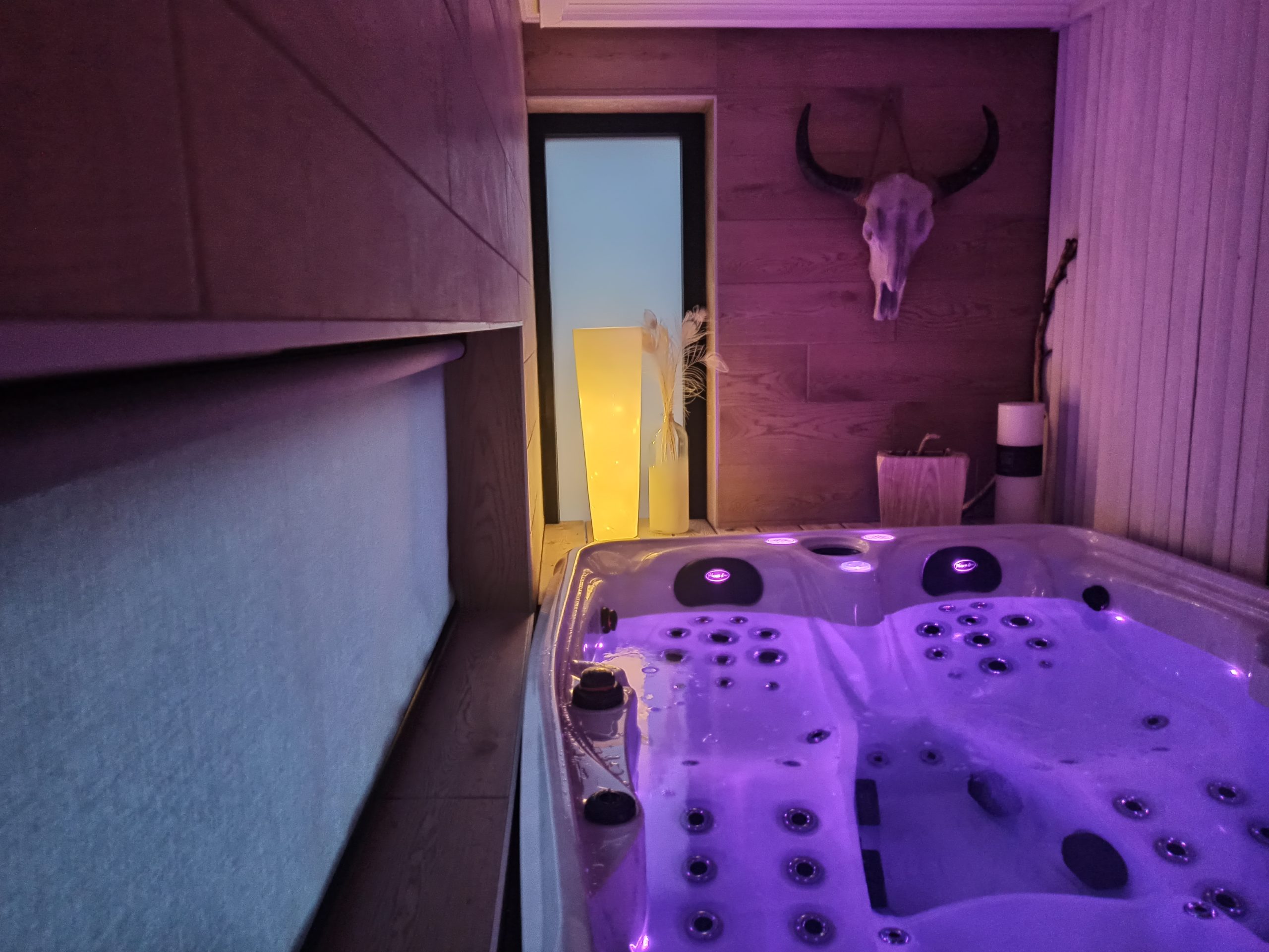 Le jacuzzi vous attend. Profitez ensemble de ses 2 places allongées.